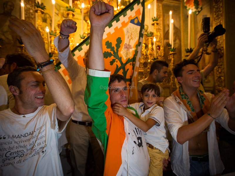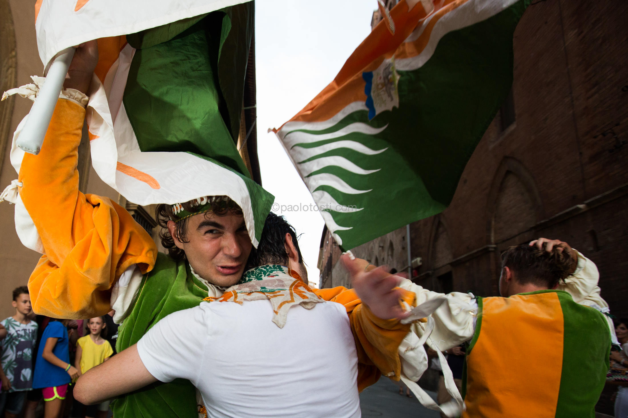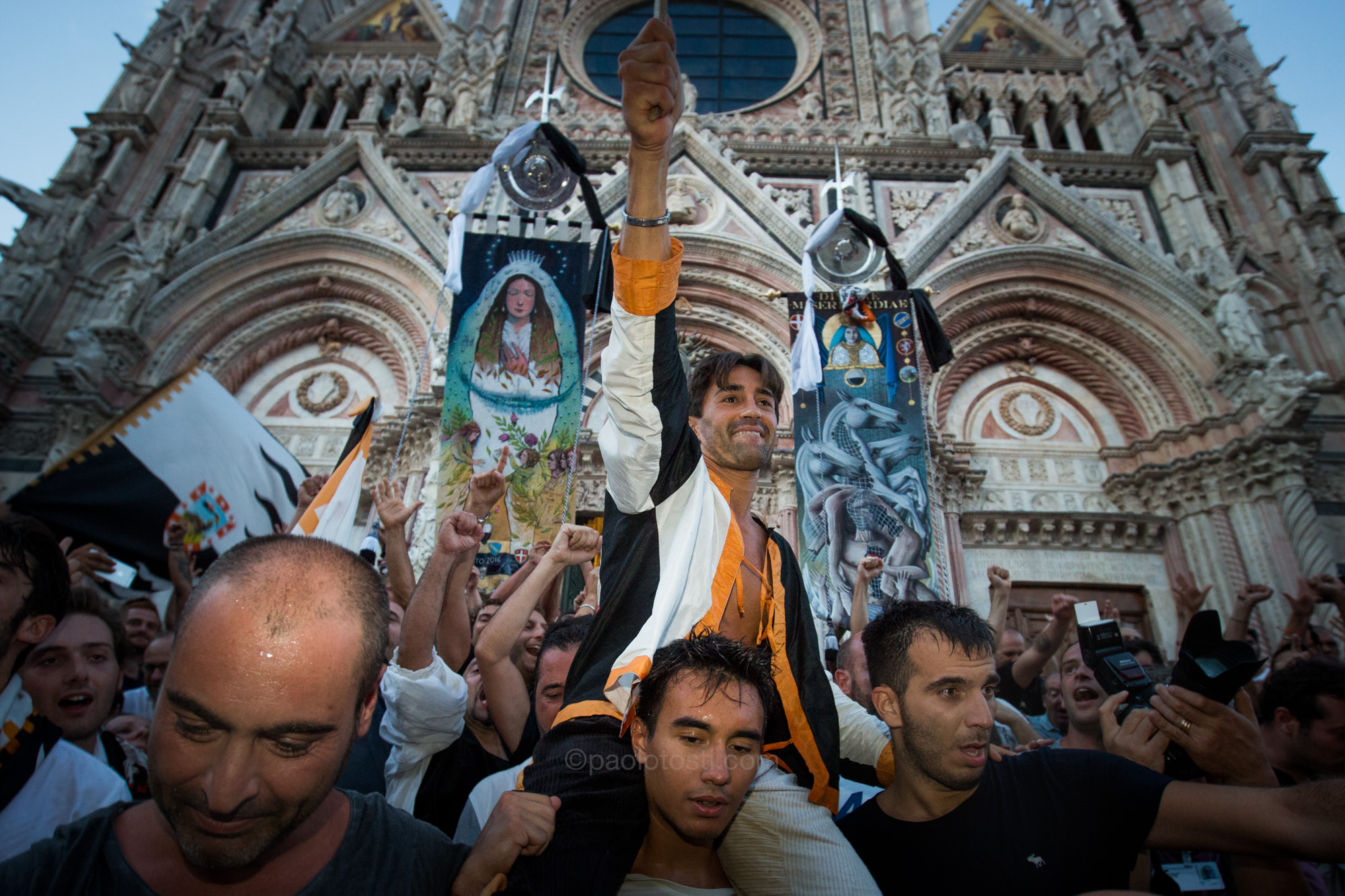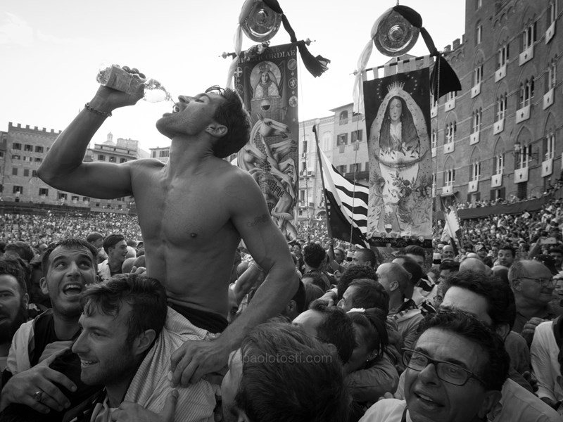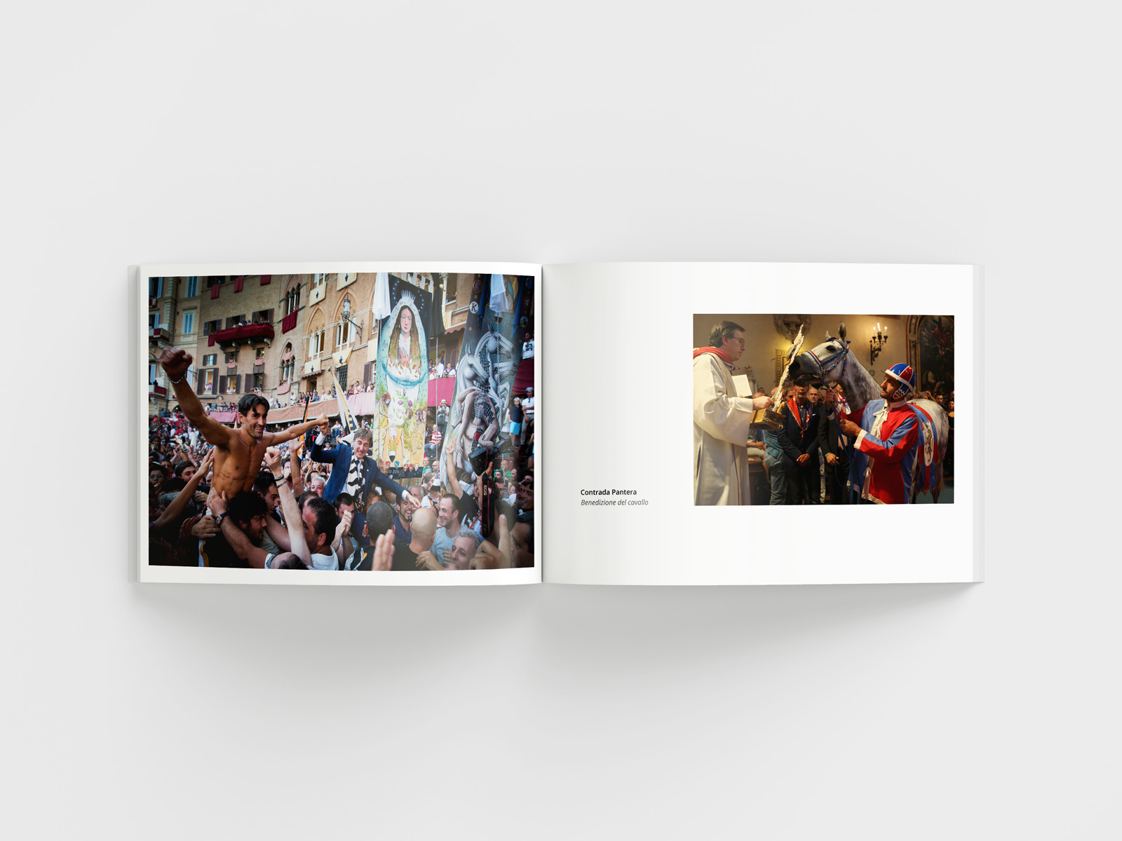 SEDICISTUDIO, attraverso le fotografie scattate da Paolo Tosti, ha realizzato un progetto editoriale che vuole aiutare le persone ad immergersi nel clima che si respira nella città di Siena durante le giornate del Palio. Al centro del progetto c’è la persona, protagonista della storia, delle tradizioni e degli straordinari riti sopravvissuti al trascorrere dei secoli, che ogni anno nella splendida città toscana rivivono come se il tempo si fosse fermato. Le tante fotografie a colori e in bianco e nero interagiscono a volte con alcuni elementi grafici, inseriti per meglio comprendere e comunicare l’essenza del Palio, vero e proprio punto cardine di questo progetto di documentazione e comunicazione capace di raccontare e testimoniare per tutelare storia e tradizione.