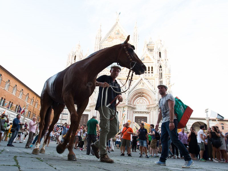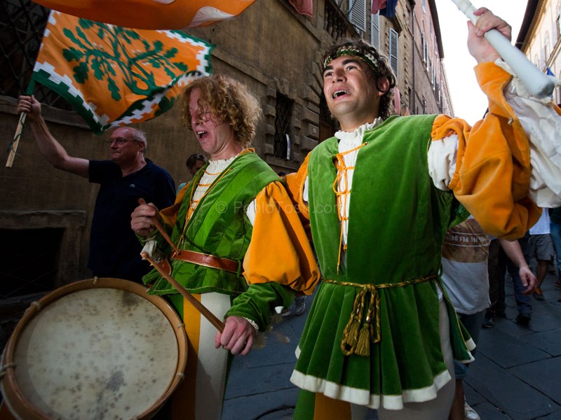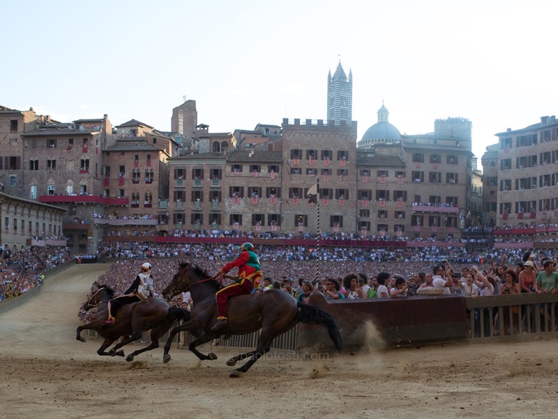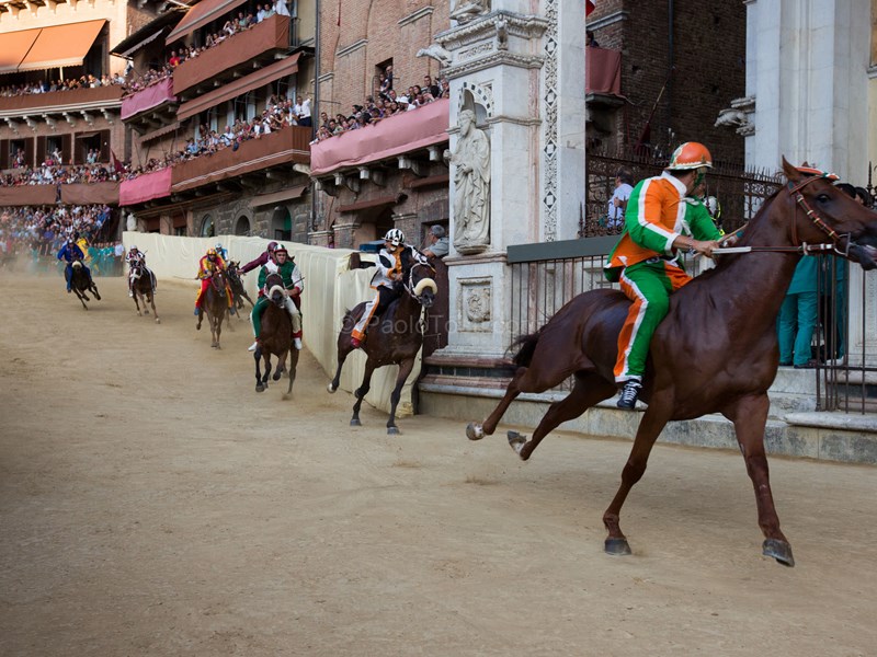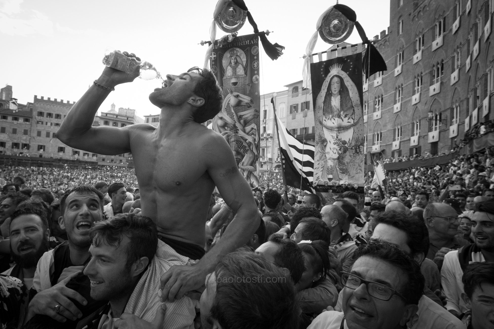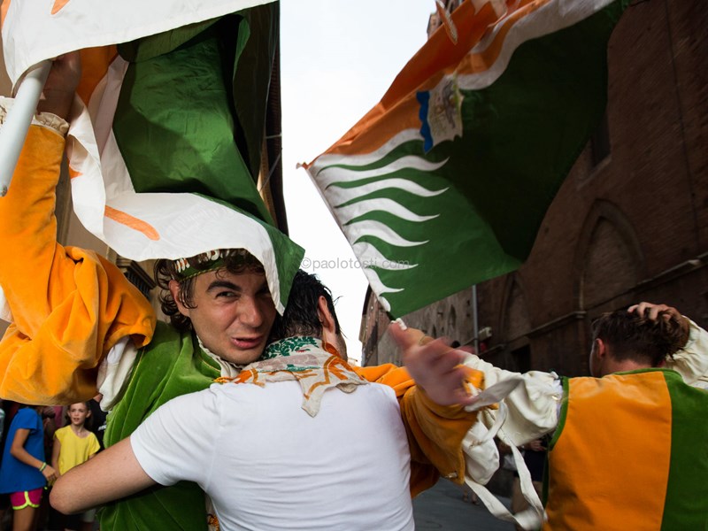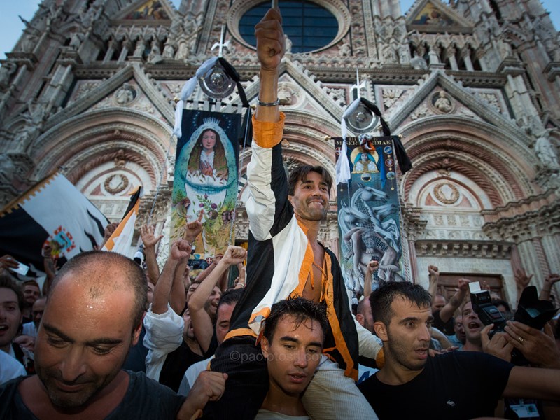 SEDICISTUDIO, attraverso le fotografie scattate da Paolo Tosti, ha realizzato un progetto editoriale che vuole aiutare le persone ad immergersi nel clima che si respira nella città di Siena durante le giornate del Palio. Al centro del progetto c’è la persona, protagonista della storia, delle tradizioni e degli straordinari riti sopravvissuti al trascorrere dei secoli, che ogni anno nella splendida città toscana rivivono come se il tempo si fosse fermato. Le tante fotografie a colori e in bianco e nero interagiscono a volte con alcuni elementi grafici, inseriti per meglio comprendere e comunicare l’essenza del Palio, vero e proprio punto cardine di questo progetto di documentazione e comunicazione capace di raccontare e testimoniare per tutelare storia e tradizione.